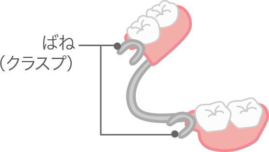 部分入れ歯については、ばね(クラスプ)の部分を小さなハブラシでていねいに清掃します。ばねをかける歯のほうも注意して清掃しましょう。
